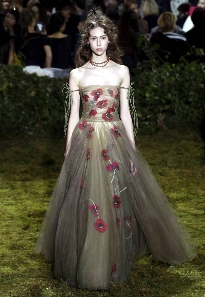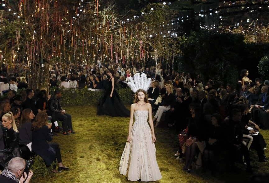 El cuento de Dior. Por su lado, María Grazia Chiuri adaptó su primera colección de alta costura para Dior, con una puesta casi de fábula de cuento: Como si se tratase de una locación de película alfombró el suelo del museo Rodin de musgo natural, llenó el techo de espejos y las paredes de plantas naturales, forró los bancos de boj y trasladó un árbol hasta el centro de la pasarela...¿Nada mal no?