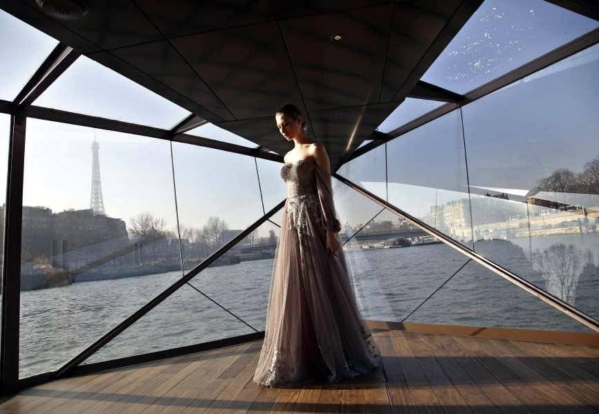 Moda en el Sena. El desfile realizado y "modelado" por la vietnamita Jessica Minh Anh, modelo (diseñadora y organizadora de pasarelas diversas desde cada lado del globo en paisajes y contextos increíbles) impactó una vez más en su concepto y forma.