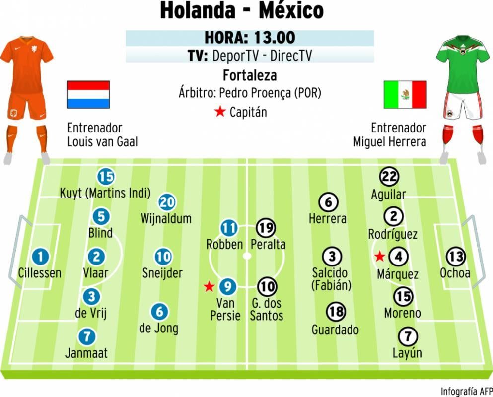 Hoy, Herrera vs Van Gaal; Peralta vs Cillessen; Márquez vs Sneijder; Ochoa vs Van Persie; Moreno vs Robben... Hoy, México vs Holanda.