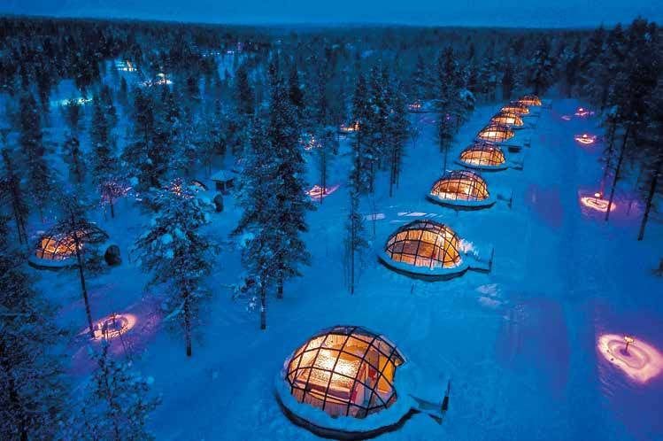 El hotel Kakslauttanen ofrece una experiencia única de alojamiento, se encuentra en Finlandia, Laponia, ubicado a 250 kms del círculo polar Ártico.