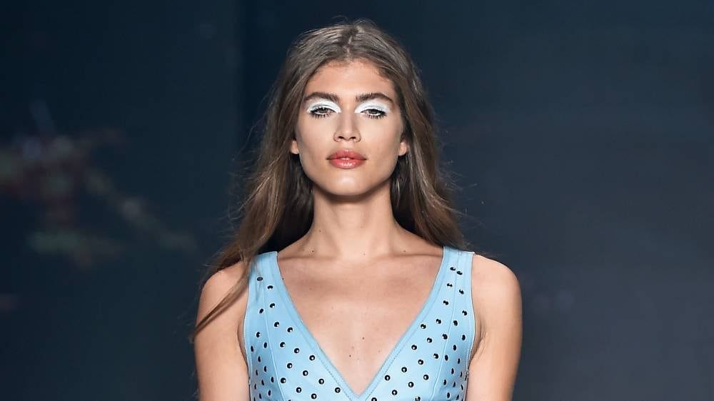 Valentina Sampaio, que pagó con sus ahorros su estudios en la Facultad de Moda de la ciudad nordestina de Fortaleza, comenzó a desfilar a los 16 años, en eventos locales.