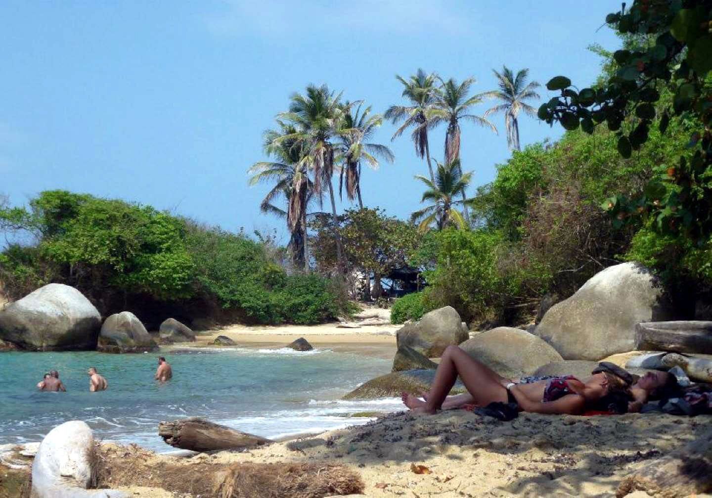 El Parque Nacional Tayrona, de exuberante belleza, cuenta con todo lo necesario para pasarla bien, experimentar aventuras de selva y mar, y conocer a viajeros del mundo que con mochilas y ojotas se quedan acampando en las prístinas playas que dan al Mar Caribe. Territorio de los aborígenes Taironas ofrece excursiones hacia ciudadelas y antiguos restos arqueológicos, pero también se puede convivir con esa cultura y sus descendientes. Comprarles agua de coco para saciar la sed, o jugo de frutas y tortillas, imprescindible.