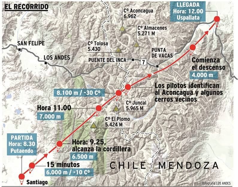 Pero contra todos los pronósticos, los aventureros lo consiguieron y fueron los precursores para que hoy el cruce aéreo de la cordillera sea ese mero trámite. Además, echaron por tierra (o por aire, en este caso) la teoría que sostenía que la corriente aérea circulaba de este a oeste, aunque recién se comprobó con rigor científico en los '70.