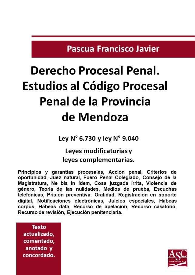 Hoy a las 17.30, en el salón de actos de la Suprema Corte de Justicia (España 480 de Ciudad) se presenta "Derecho Procesal Penal. Estudios al Código Procesal Penal de la provincia de Mendoza", de Javier Pascua, quien también se desempeña como fiscal de la Tercera Cámara del Crimen.