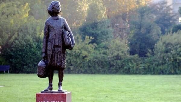 La escultura sólo tiene la leyenda "Ana Frank, 1929-1945", pero está previsto que la base de mármol incluya el siguiente texto: "En sus 15 años vivió la infinitud de la esperanza, sus palabras se ponen de pie por ella y constituyen un símbolo de resistencia. El diario de Ana Frank inspira los jóvenes en todo el mundo a construir libertad".