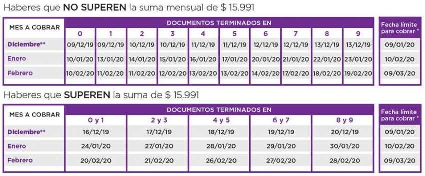 En la pantalla principal del sitio web www.anses.gob.ar, sección Accesos rápidos, opción Calendario de Pagos, Anses publica el cronograma de cobro correspondiente a los meses de diciembre de 2019 y enero y febrero de 2020.
