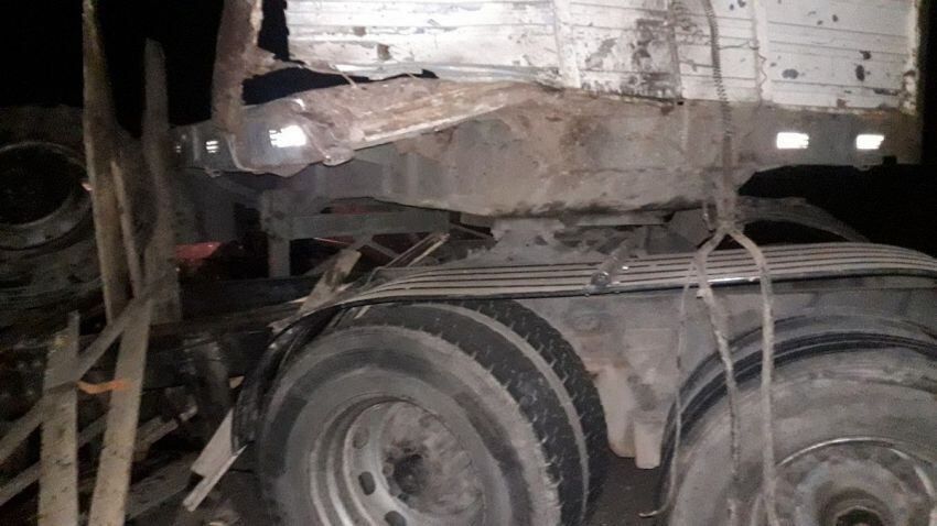 Por razones que se investigan, el Ford Cargo colisionó en la parte trasera izquierda al acoplado del Scania que estaba detenido, detallaron fuentes policiales.