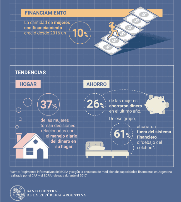 Según un informe realizado por el Banco Central (BCRA), son las mujeres quienes principalmente toman las decisiones relacionadas con el manejo diario del dinero en su hogar, siendo el caso del 37% de las mujeres frente a un 30% de los hombres.