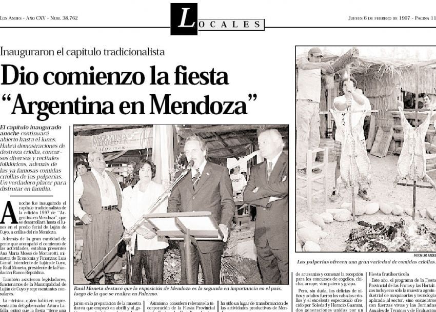 Muchos recuerdan el populoso y ostentoso festival gauchesco-religioso "Argentina en Mendoza", que tuvo su primera edición en 1993. "Una especie de Jesús María cuyano", simplifican quienes vivieron las jornadas de jineteadas y cuecas, done se lucía la Escuadra de Arte Ecuestre Argentino, auspiciada por el banquero.