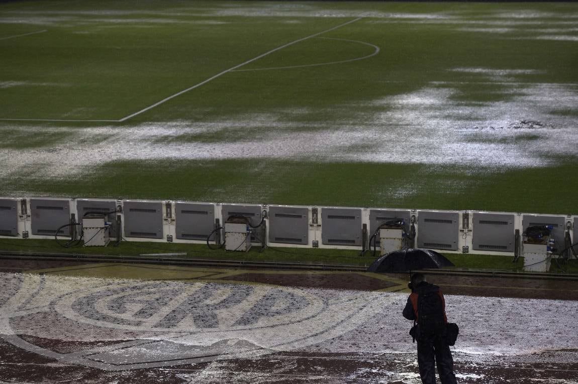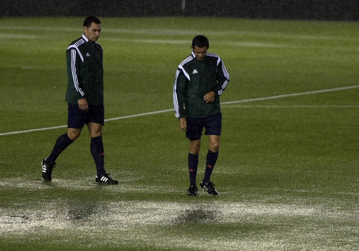 Como una pileta de natación, así quedó el estadio Monumental Antonio Vespucio Liberti producto de las intensas lluvias que azotaron la Capital Federal en la tarde del jueves. El sistema de drenaje de la cancha de River Plate funcionó correctamente, pero cayó tal la cantidad de agua que la máxima autoridad del encuentro, el árbitro paraguayo Antonio Arias, decidió postergar el clásico entre las selecciones de Argentina y Brasil por la tercera fecha de las Eliminatorias sudamericanas rumbo al Mundial de Rusia 2018.