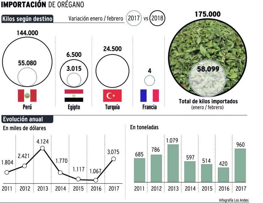 Según datos del IDR, entre enero y febrero de 2018, versus iguales meses de 2017, el crecimiento de las importaciones de orégano fue de 200%.