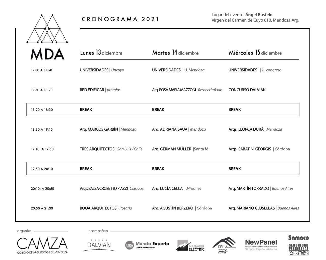 “En esta séptima edición vamos a tener la oportunidad de ver estudios emergentes de la Argentina, grandes exponentes y referentes. Es una oportunidad para celebrar y pensar la arquitectura”, destacó el presidente del CAMZA, Arq. Hugo Ponce, al inicio del evento.