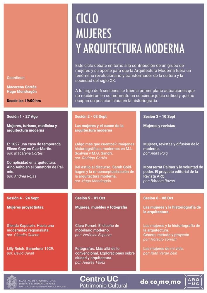 El ciclo aborda un campo que en los últimos años ha cobrado una relevancia inusitada y ha despertado un interés generalizado: la contribución que un grupo de mujeres, actuando desde distintos ámbitos, hizo a la arquitectura moderna para que ésta fuera lo que es: un fenómeno revolucionario y transformador que afectó la vida de una multitud de mujeres y hombres modernos.