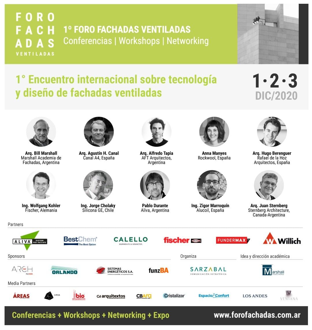 El Arq. Hernán Barbero Sarzabal, director de Sarzabal a cargo de la organización del evento, completa: “Foro Fachadas Ventiladas es un encuentro internacional de carácter académico que sumará un innovador formato de workshops y dinámicas de networking, potenciando al máximo las oportunidades brindadas desde plataformas webinar enfocadas a la interacción entre todos los participantes. Para los arquitectos será un espació de inspiración sobre el diseño y de conocimiento sobre las fachadas ventiladas, permitiendo potenciar sus proyectos con múltiples recursos expresivos. Para los desarrolladores, las fachadas ventiladas aportan soluciones de excelente relación costo – beneficio, dentro de un rubro estratégico de un edificio en cuanto a monto de inversión, y suman ventajas en eficiencia energética en la operación, así como en imagen e identidad de los emprendimientos. Para los constructores será una capacitación sobre las técnicas de este sistema, en diálogo con los expertos internacionales. Para todos los actores de la cadena de valor, será un verdadero encuentro regional entre arquitectura, real estate, construcción e industria”.