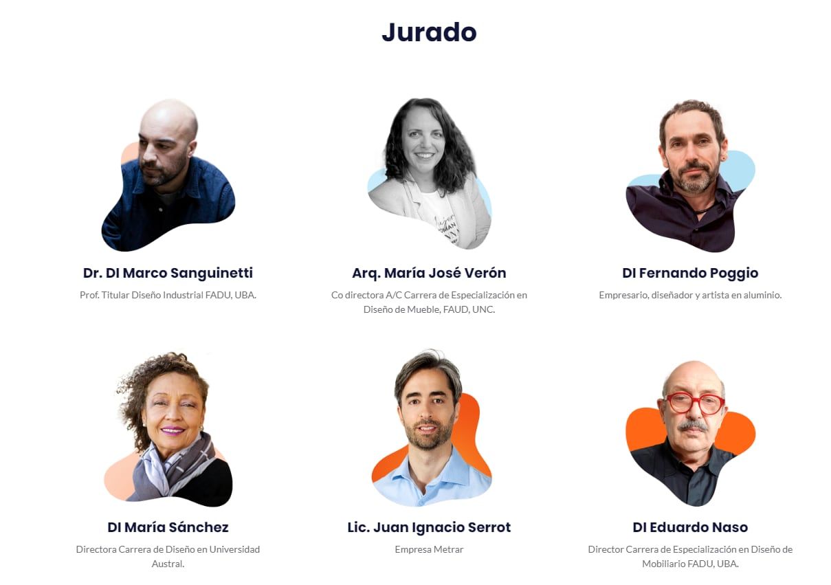El Jurado está compuesto por prestigiosos profesionales del sector, el Dr. DI Marco Sanguinetti (Prof. Titular Diseño Industrial FADU, UBA); la Arq. María José Verón (co directora A/C Carrera de Especialización en Diseño de Mueble, FAUD, UNC); el DI Fernando Poggio (diseñador, empresario y artista en aluminio); la DI María Sánchez (Directora de la Carrera de Diseño en Universidad Austral); el Lic. Juan Ignacio Serrot (gerente general de la Empresa Metrar) y el DI Eduardo Naso (Director de la Carrera de Especialización en Diseño de Mobiliario FADU, UBA), quien es asesor del concurso.