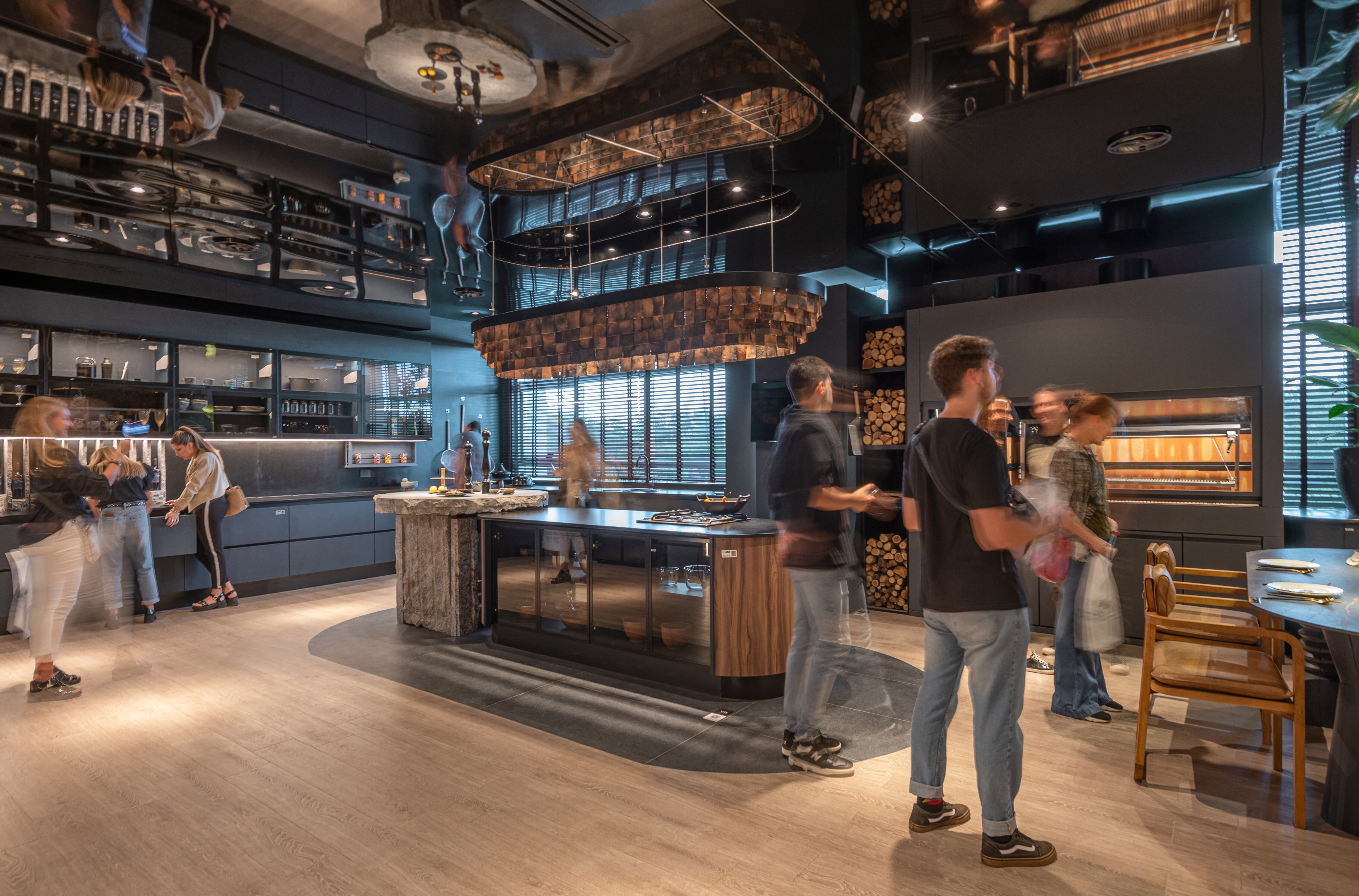 Una cocina que toma el elemento “fuego” como conector, para crear una experiencia única y generosa. Una isla que divide e integra en un juego de opuestos que se atraen. Líneas ergonómicas que invitan a un recorrido y a descubrir una escenografía ecléctica, de línea modernas.