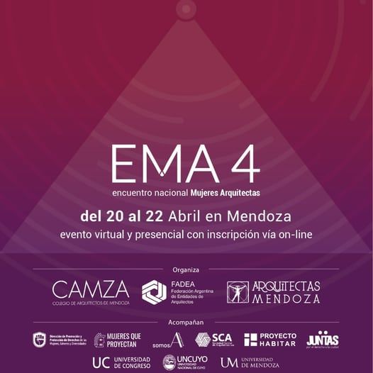 El Colegio de Arquitectos de Mendoza (CAMZA), Arquitectas Mendoza y la Federación Argentina de Entidades de Arquitectos (FADEA), organizan la cuarta edición del Encuentro Mujeres Arquitectas (EMA): “Nuevos tiempos, nuevos espacios”.
