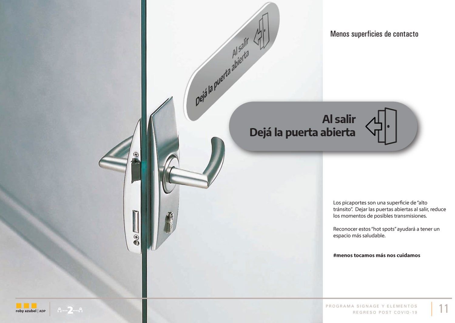 Las señales resultan más efectivas si están ubicadas cerca del lugar donde debe tomarse la acción. Para esto hay que identificar los puntos y situaciones críticas y actuar sobre ellas. Además de los puntos ya mencionados, detectamos otros y seguramente vayan surgiendo más a medida que las oficinas retomen su vida.