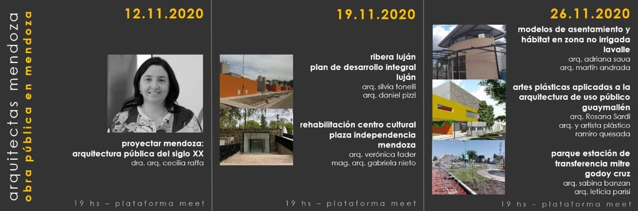 Jueves 12, desde las 19. Charla sobre “Historia de la arquitectura pública del siglo XX en Mendoza”, a cargo de Arq. Cecilia Raffa. Organizada por el colectivo Arquitectas Mendoza, en el marco del ciclo Obra Pública en Mendoza. Solicitar link de acceso a: [email protected]