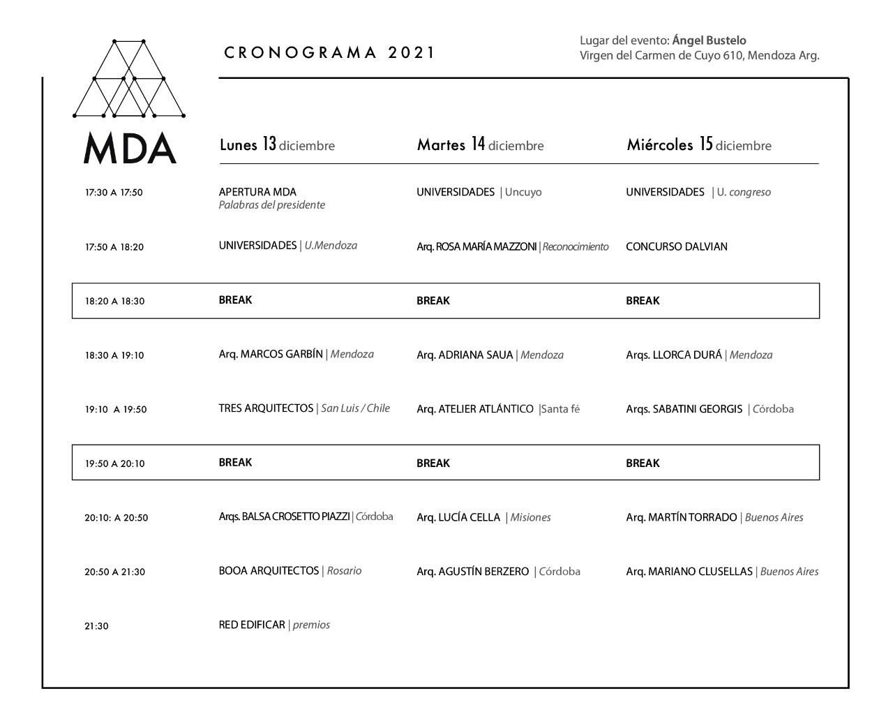 El MDA o “Mes de la arquitectura” es un evento que organiza el Colegio de Arquitectos de Mendoza. En esta séptima edición la sede será el Auditorio Angel Bustelo y participarán referentes de todo el país los días 13, 14 y 15 de diciembre.