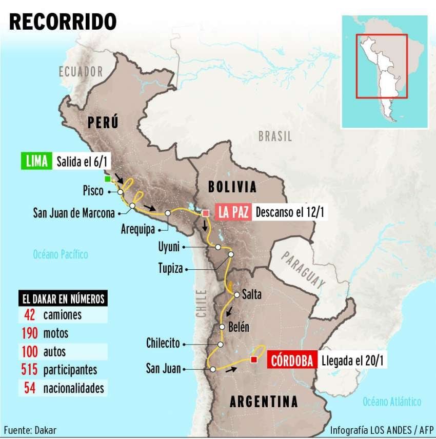 Este año, la caravana partirá desde Lima y recorrerá tres países, atravesando también territorio boliviano aunque por tercera vez desde que la prueba desembarcó de este lado del Atlántico, Chile no formará parte del recorrido.