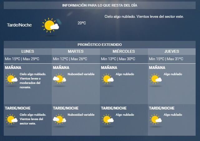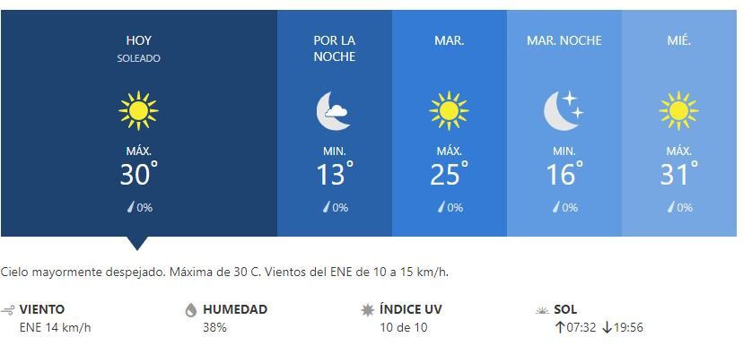 Por otro lado, el jueves será una jornada de poca nubosidad con vientos moderados del noreste. La máxima estimada es de 30 grados.