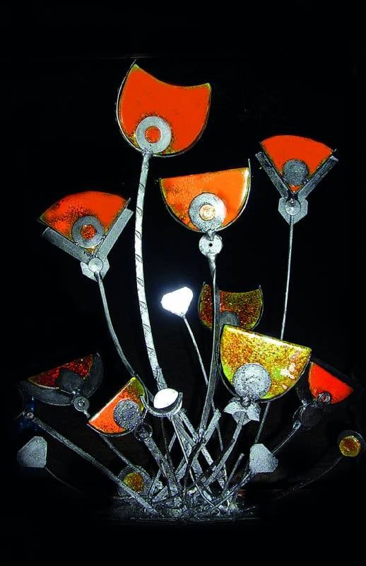 Daniel Saber. "Turbantes". Vidrio fusionado soportado en hierro.