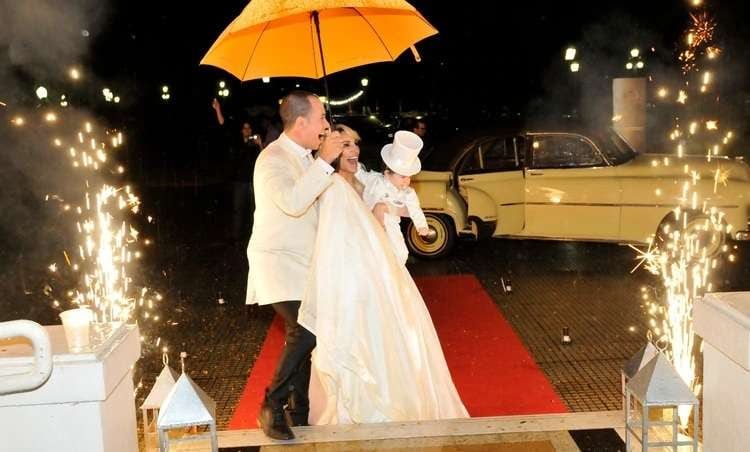 El evento fue en Puerto Madero y tanto Vicky como el niño se bajaron de un elegante auto antiguo de lujo, ambos con looks total white.