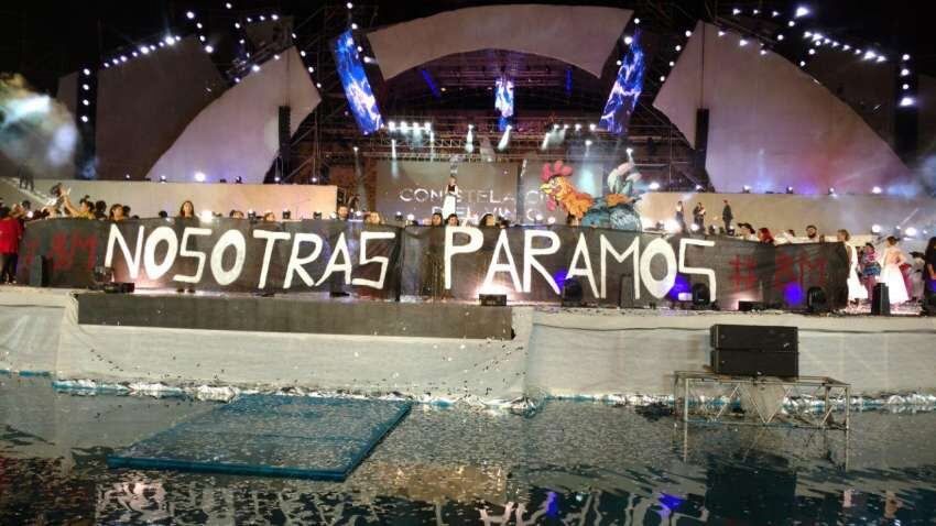 En el final del show, los artistas compartieron una larga bandera con la leyenda "Nosotras paramos", en referencia al 8 de marzo, Día de la Mujer.