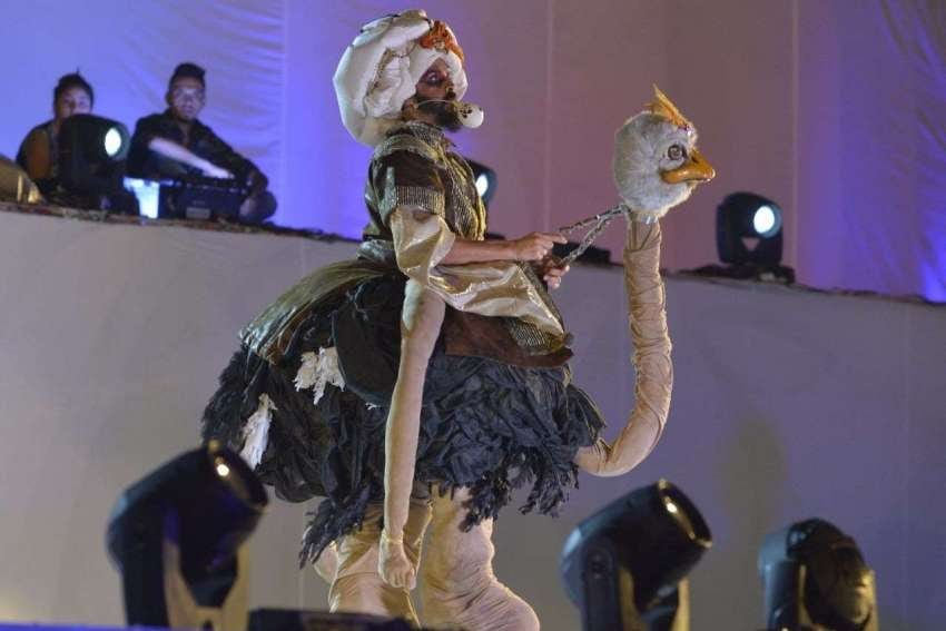 Montado en un avestruz y bajo su personaje Fakir, el versátil artista hizo un monólogo para entretener el público, que ansioso en más de una ocasión lo abucheó, mientras Baigorri permaneció estoico en el escenario. Una actitud reprochable de la platea que no supo apreciar y disfrutar el momento.
