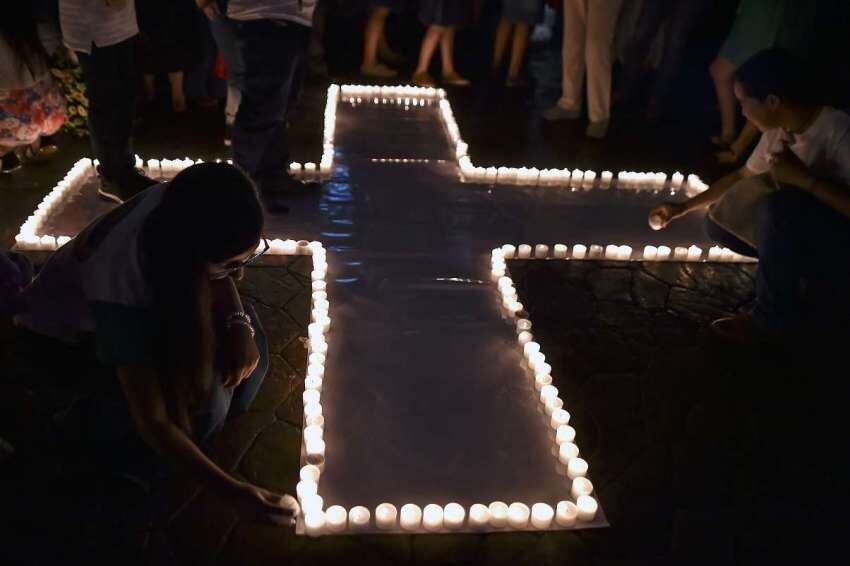 Y en Cali, la tercera ciudad de Colombia, activistas encendieron velas para formar el famoso signo "60+".