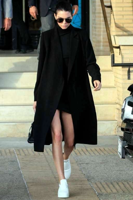 Si bien pueden ser más formales como en el caso del look de Kendall Jenner, enfundada en un vestido negro, y un tapado liviano que conjuga con zapatillas blancas, también podés llegar más al extremo y lucirte con un calzado de línea deportiva y formal. Sólo hay que animarse.