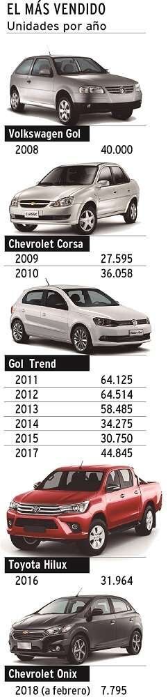 Sin embargo, los resultados parciales de febrero difieren de lo ocurrido en los últimos años. De acuerdo a los informes de Acara, el Volkswagen Gol fue el auto más vendido del país en 2008, 2011, 2012, 2013, 2014, 2015 y 2016, mostrando una claro dominio del segmento de precios más bajos durante muchos años.