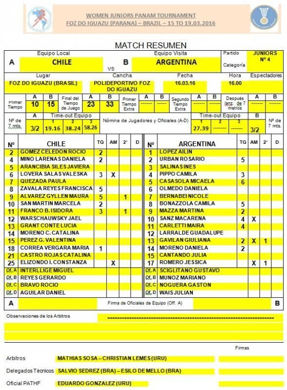 Lejos de la idea de partido sentenciado, en el segundo tiempo las conducidas por el argentino Miguel Angel Interllige concretaron otra reacción acercándose nuevamente a dos aprovechando un nuevo bajón de las Juniors argentinas. Sin embargo, en las individualidades, en los aportes de "Maca" Sans y Maira Carletti como principales armas ofensivas, Argentina encontró el camino para volver a acomodarse en la cancha. Dos goles consecutivos de Daniela Moreno por la vía del contraataque estiraron la diferencia a siete -máxima del partido- para generar un quiebre y terminar de cerrar el encuentro a favor del conjunto nacional.