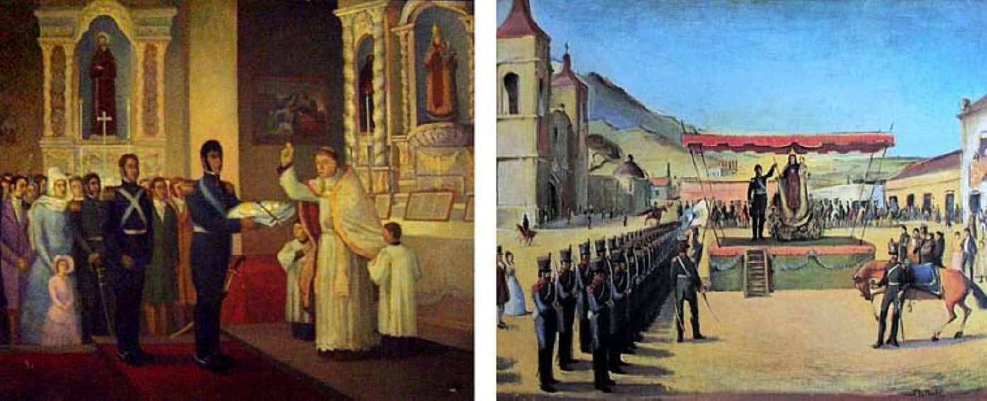 San Martín subió al tablado que se había levantado en la Plaza, exhibió la bandera y todos los cuerpos presentaron las armas. Entonces, pronunció con vibrante voz: “¡Soldados! ¡Ésta es la primera bandera independiente que se bendice en América! La batió tres veces y el pueblo y las tropas lanzaron un estruendoso ¡Viva la Patria!”.