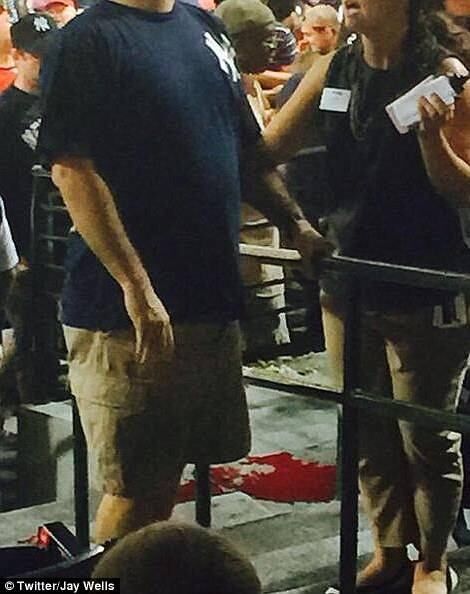 El hombre cayó de la sección 401 hacia un área donde se sientan esposas y familiares de los jugadores. Había sangre sobre la superficie de concreto alrededor de los asientos.