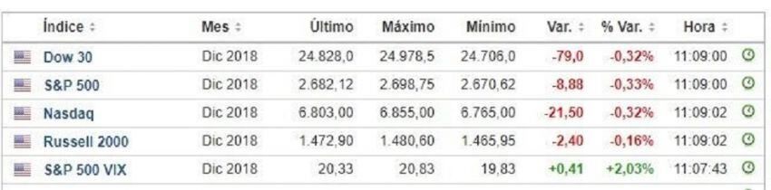 El S&P 500 baja un 0,33%, seguido de cerca por el Dow 30 y el Nasdaq que se mimetizan con un descenso de 0,32%.