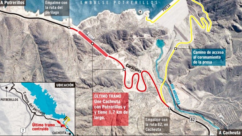 Actualmente la ruta 82 está habilitada hasta el puente colgante de Cacheuta, viniendo desde la ciudad, y hasta unos kilómetros antes de la boca del túnel por el camino del perilago (del otro lado, desde Potrerillos). En el medio, donde la obra está casi lista, hay muchas novedades que sorprenderán a los viajeros.