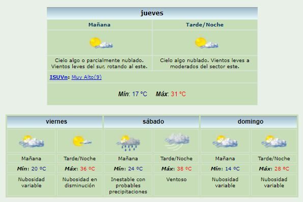Finalmente, se prevé para el domingo una baja de la temperatura por el ingreso de un sistema frontal. La máxima, en este caso, será de 29 grados.