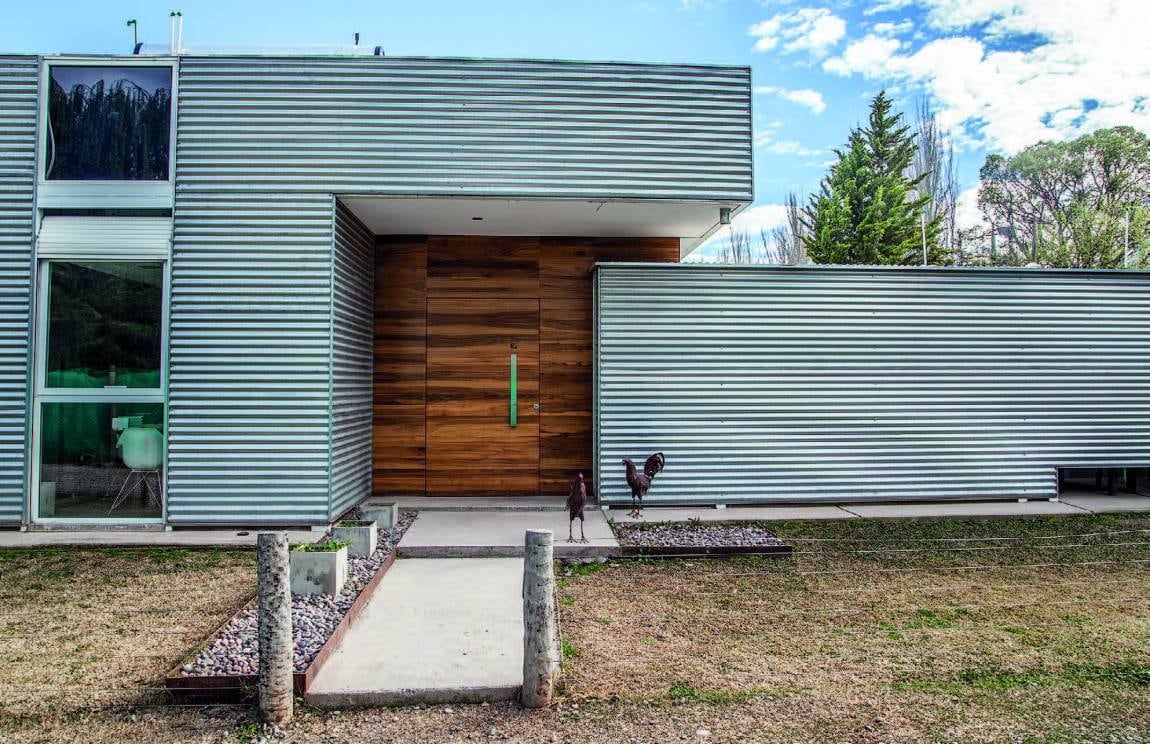 Un factor de sustentabilidad del sistema es la rapidez versus los sistemas tradicionales. La estructura de toda la vivienda fue montada en una semana y los muros en otra. Es decir que en 15 días la vivienda contó con muros y techo. La aislación térmica se coloco por fuera y la chapa funciona como protección mecánica de esta. La chapa, independientemente de la expresión formal, del gusto de los arquitectos, permite mantener la limpieza exterior ya que al estar la vivienda ubicada en una calle de tierra con mucho polvo en expansión permanente permite ser limpiada rápidamente con agua. Si, en cambio, estos muros hubieran sido pintados, todos los años deberían repasarse, lo que produce un consumo permanente de materiales para mantenerla en condiciones. Estos materiales consumen dióxido de carbono en su fabricación, traslado, etc y así aumenta el costo ambiental de la obra.