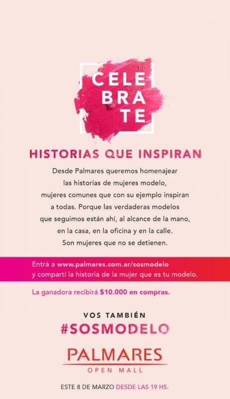 Con sólo ingresar a www.palmares.com.ar/sosmodelo cualquier persona podrá postular a su modelo de mujer contando su historia. La mujer más votada recibirá una Gift Card por $10.000 en compras y será invitada de honor a Celebrate.