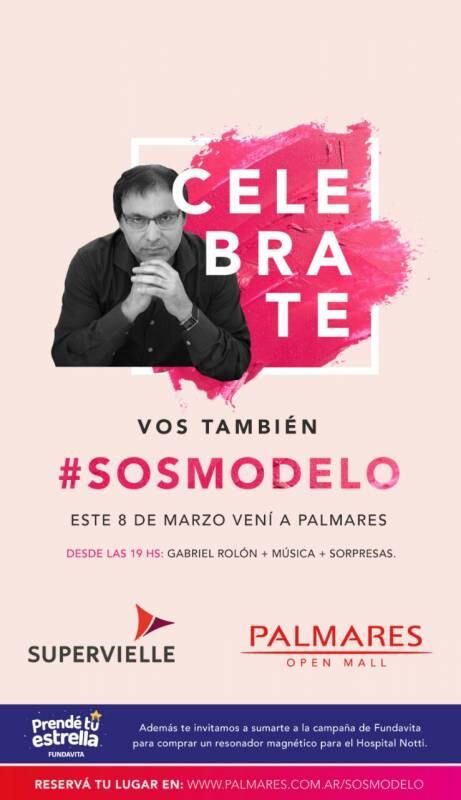 Con motivo del Día de la Mujer, Palmares Open Mall realiza, por segundo año consecutivo, el festival Celebrate el 8 de marzo, a las 19. Esta edición, que cuenta con el auspicio de Banco Supervielle, se da bajo el concepto #sosmodelo, concientes de que todas las mujeres lo son: modelos de madres, de profesionales, de vida... en definitiva, de mujer.