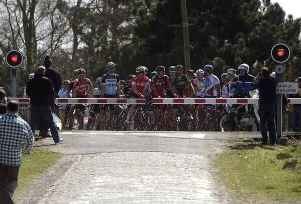 Con tal de ganar, el grupo del pelotón líder del París- Roubaix decidió pasar el cruce cuando las barreras de seguridad de las vías indicaron que el tren estaba a punto de pasar. Incluso algunos arriesgados pasaron con las señales bajas. Esto puso los pelos de punta a los ciclistas, organizadores y espectadores allí presentes.