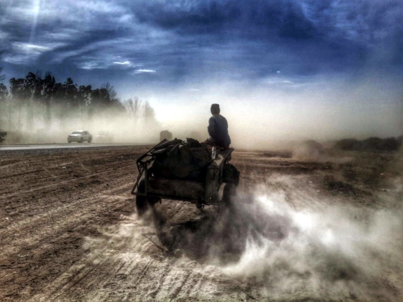 Enseguida, se decidió publicarla en portada. “Y sí, la había sacado con un celular”, aclara.Y eso importa porque, precisamente, esa foto acaba de recibir el 1° Premio en categoría Periodismo/documental en el Buenos Aires Mobile Festival 2015. “La carretela estaba sobre la ruta 40, cerca del Aeropuerto y se levantó una nube de polvo”, detalla.