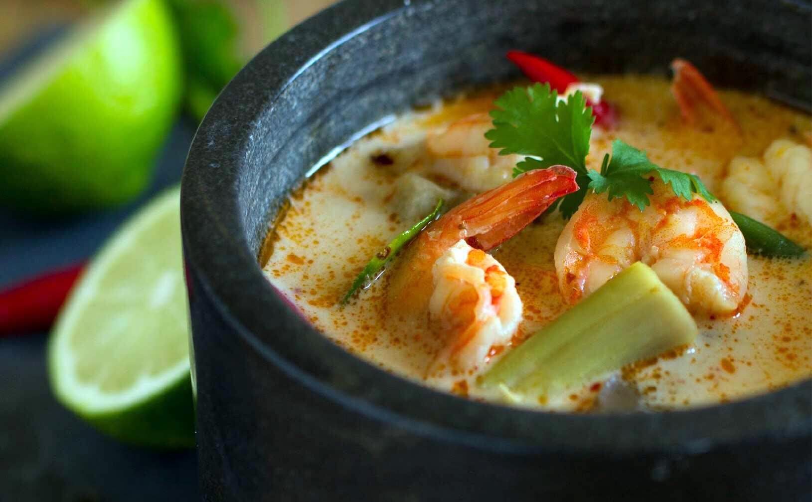 Curry de gambas con leche de coco