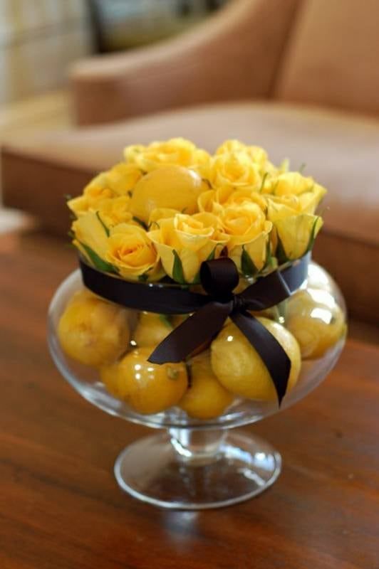 LIMONES Y ROSAS PARA DECORAR LA MESA