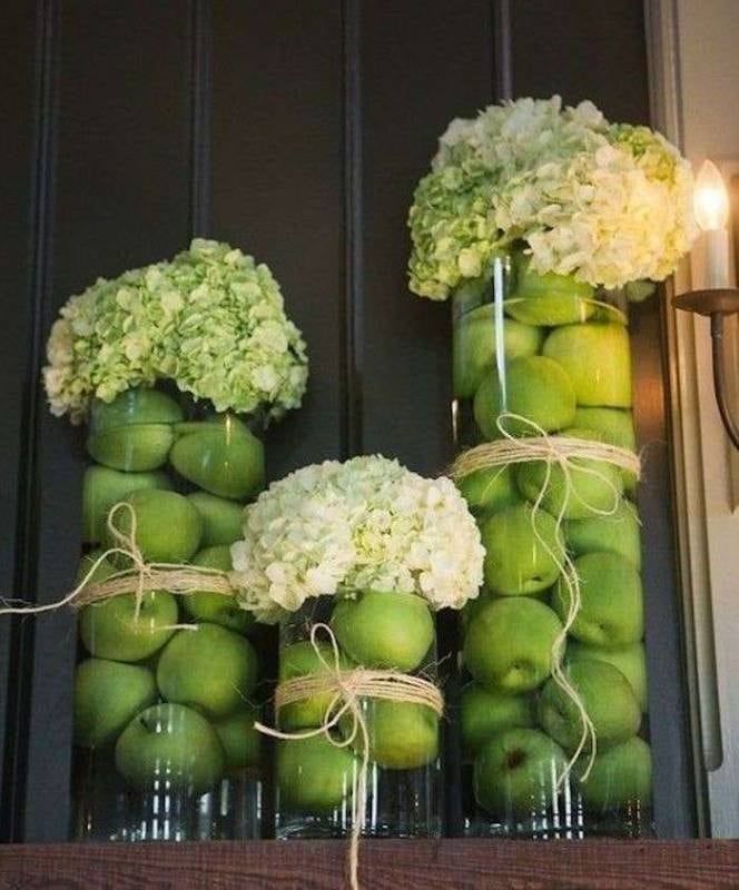 Las manzanas, colocado en tarros y jarrones de cristal, son un detalle decorativo original y elegante.