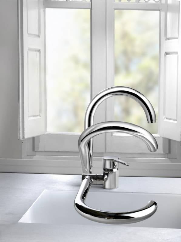 Esta elección es cada vez más común en las cocinas. Son muy utilizados en las cocinas, que tienen la grifería situada debajo la ventana con hojas oscilo-batientes y esto supone un obstáculo a la hora de abrir la ventana o algún armario molesto.