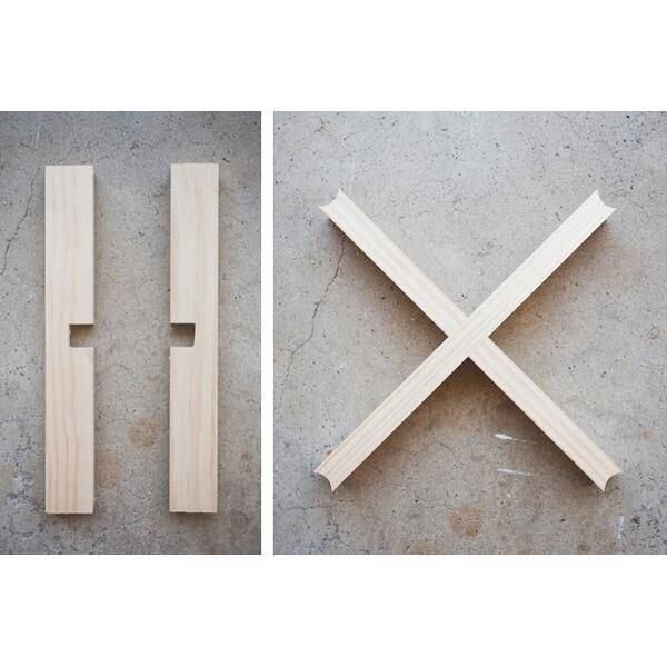 4. Encontrar el centro de cada varilla y usar una sierra manual y un cincel para remover un cuadrado de 2 cm x 2 cm en cada pieza para poder unirlas.