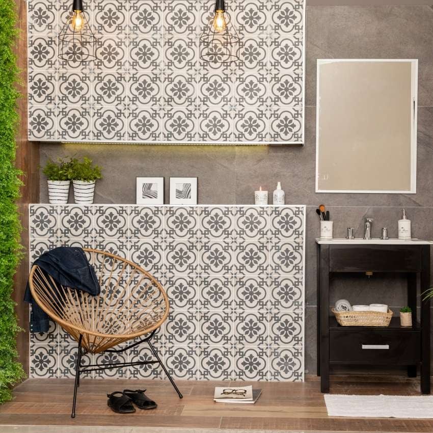 Para los que se animan un poco más, colocar una nueva cerámica o porcellanato sobre los existentes arriba de la mesada de la cocina o el lavadero.